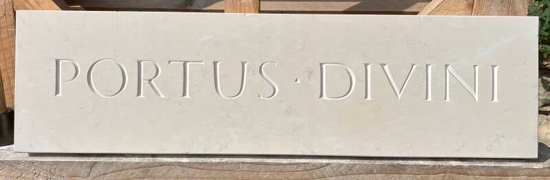 Gravure en capitale romaine sur un calcaire tendre, d'environ 50 cm de long et destinée à être accrochée sur le mur d'une maison, à l'intérieur ou à l'extérieur.